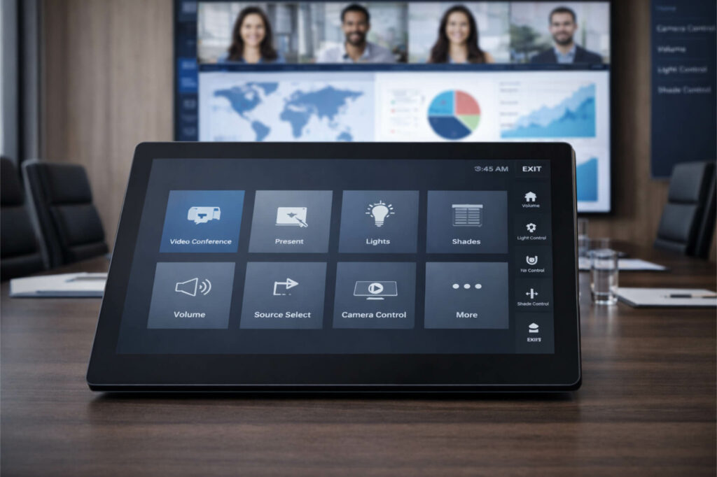 Mit einer intelligenten Mediensteuerung bedienen Sie Audio, Video, Licht und weitere Funktionen bequem über ein Touchpanel oder eine App.