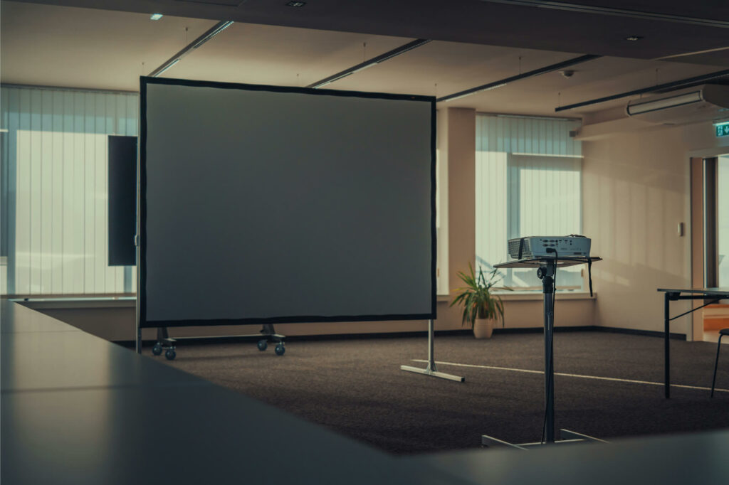 Für grössere Säle, Schulungszentren oder Veranstaltungsräume bieten wir leistungsstarke Beschallungs- und Videoanlagen, die eine klare Verständlichkeit und gleichmässige Raumausleuchtung garantieren.